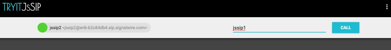 Now that both of the endpoints are registered, you can place the first call. If you're using SIP endpoints in the same project, you can use short-hand names (for example, jssip1 and jssip2 as seen in the images above) to place the call: